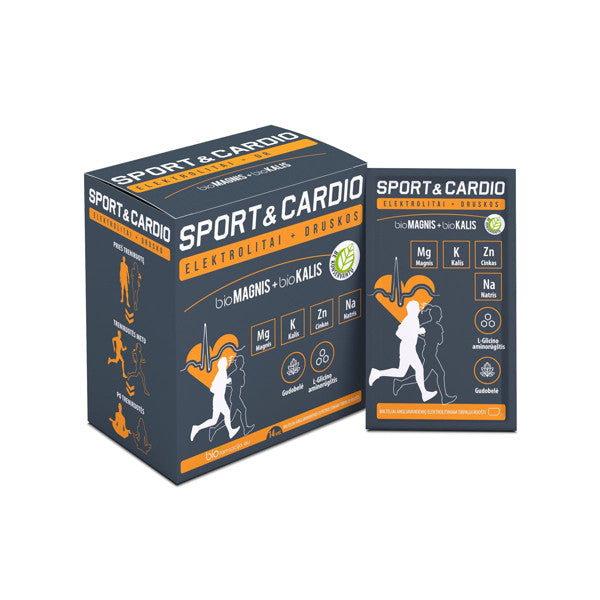 SPORT&CARDIO bioMagnis + bioKalis, elektrolitai + druskos, milteliai 14 pakelių
