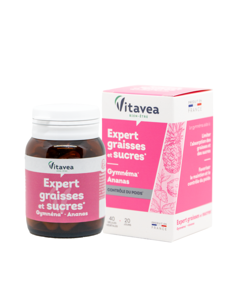 VITAVEA „Kovos su riebalais ir cukrumi ekspertas“ – tai maisto papildas, kurio sudėtyje yra pripažintų veikliųjų medžiagų, padedančių apriboti riebalų ir cukraus įsisavinimą, padedančių palaikyti svorio kontrolę - miškinės pokštenės (Gymnema) ir ananasų.  Gymnema Indijoje yra vadinama „gurmar“, pažodžiui tai reiškia „kuris naikina cukrų“. Šis ekstraktas padeda palaikyti normalų cukraus kiekį kraujyje ir padeda kontroliuoti apetitą, padeda palaikyti riebalų apykaitą, taip dalyvaudamas riebalų pašalinime. Ananasų ekstrakte yra natūralaus virškinimo fermento bromelaino. Bromelainas yra proteolitinis fermentas (enzimas), kuris padeda skaidyti baltymus, todėl juos lengviau virškinti ir pašalinti iš organizmo.